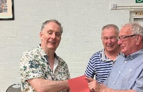 James Podger receiving his certificate from Norman Elston, with Phil Stephens.